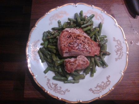 Večeře: Vepřové masíčko (panenka) s fazolkami, česnekem a kmínem.