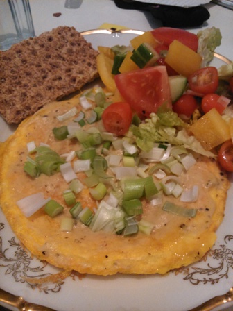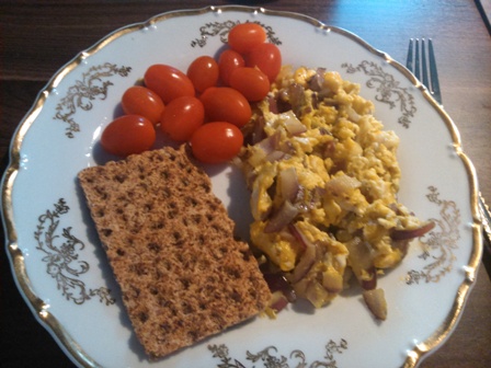 Snídaně: vajíčka, rajčátko a knackerbrot