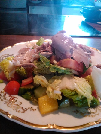 Oběd: Kuřátko se salátem a rýžovým chlebíčkem